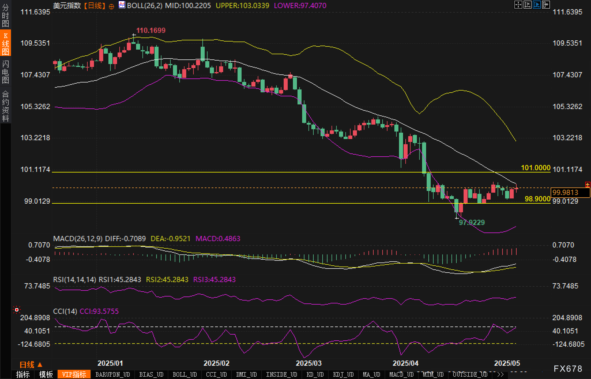 短期展望:若特朗普公布的“美英协议”缺乏具体条款支持,美元或再次测试99.00支撑区间,进一步下探至97.90并非不可预期。而若协议内容超预期、伴随美国经济数据改善,美元有望重新测试101.00甚至102.00区域。