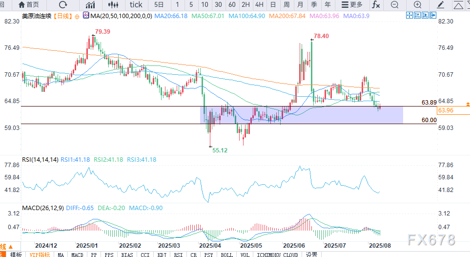 技术面上,WTI原油正试图从上周的沉重损失中恢复,但面临上周五高点63.89美元的重要水平,该水平与关键支撑转阻力区域重叠。若有效突破,下一阻力位为100日均线64.48美元和50日均线66.42美元。下方初步支撑位于日内低点62.36美元,短期支撑在61.50美元,若跌破可能触及60.00美元的心理和结构支撑位。